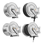 Open hose reels in AISI 304 stainless steel with a synthetic black or stain-resistant blue rubber hose, depending on the model. Available as a fixed or swiveling version, while all models include a 1.5 m entry segment of hose and a hose stop buffer. The swiveling arms can be easily turned to 4 different positions depending on requirements.